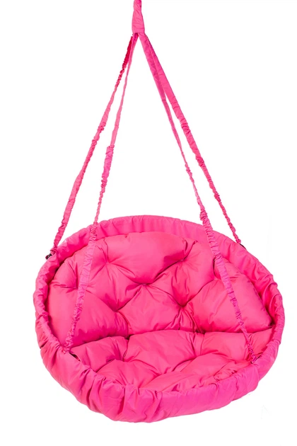 Підвісне крісло гамак до 150 кг d96 см із круглою подушкою рожевого кольору без підставки для дому та саду