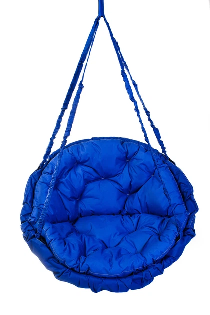 Підвісне крісло гамак до 150 кг d96 см із круглою подушкою синього кольору без підставки для дому та саду