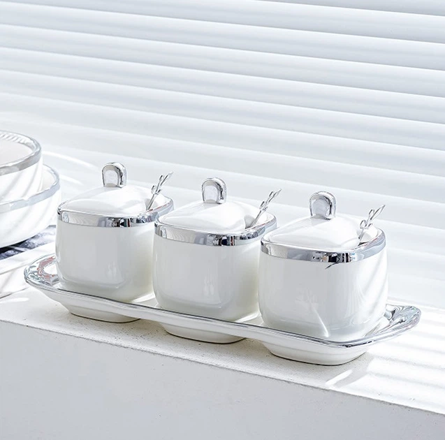 Набір банок на підставці для зберігання 12058 7 білих предметів із сріблястим.
