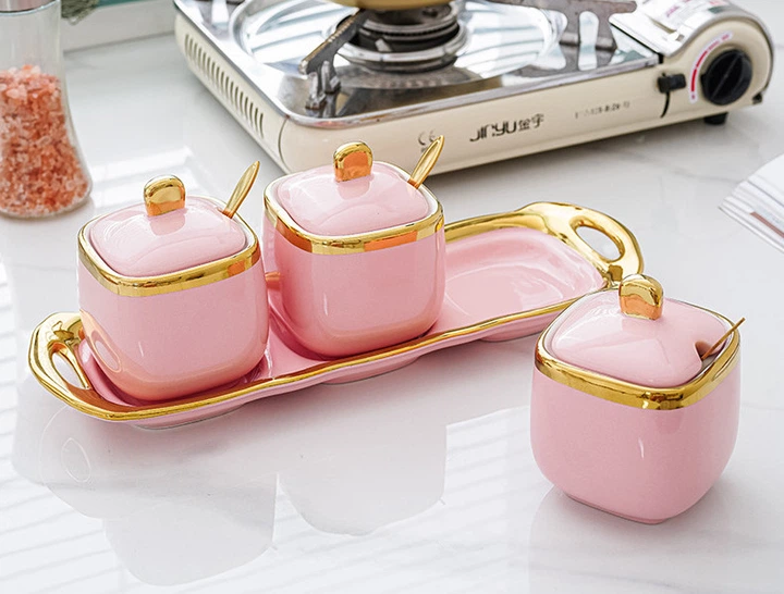Набір банок на підставці для зберігання 6860 7 предметів розовий