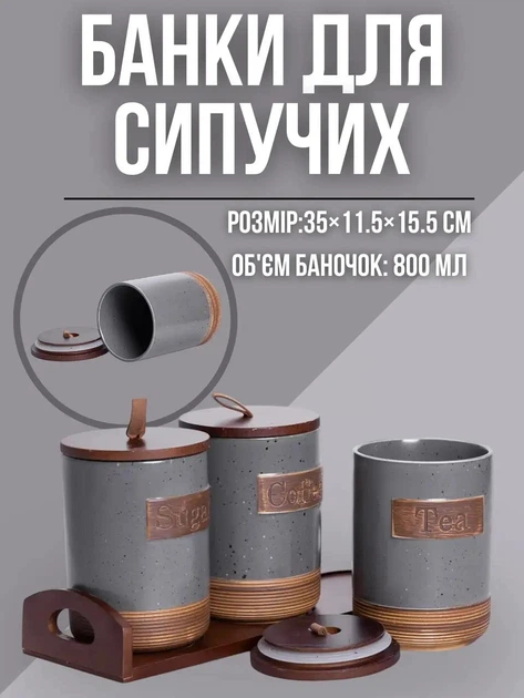 Кухонний набір баночок з кришками 3 шт по 800 мл красиві банки для сипучих продуктів на бамбуковій підставці Бежевий