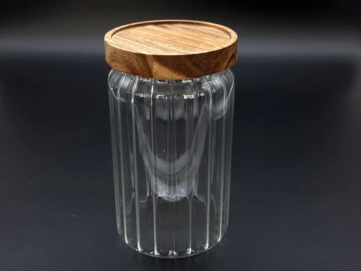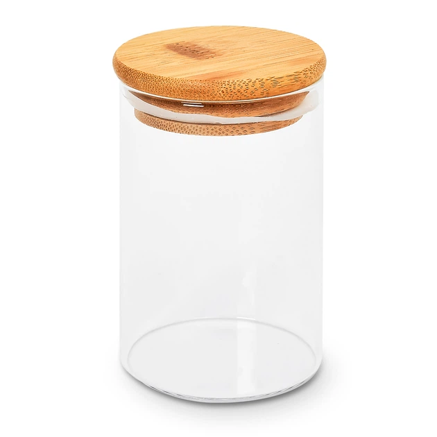 Ємність для зберігання сипучих продуктів скляна з дерев'яною кришкою 580 мл 15 х 9 см Прозорий (BUL-17)