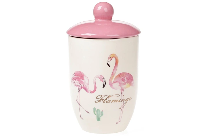 Банка керамічна для сипучих продуктів Рожевий Фламінго з золотим написом 500 мл DM070-FL