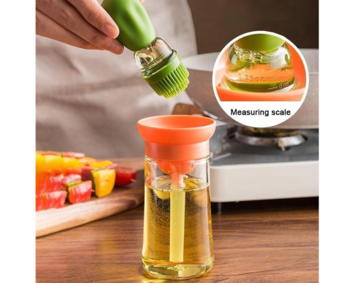 Дозатор для олії олійна банка з пензликом 180 мл зручний дозатор без крапель і бризок