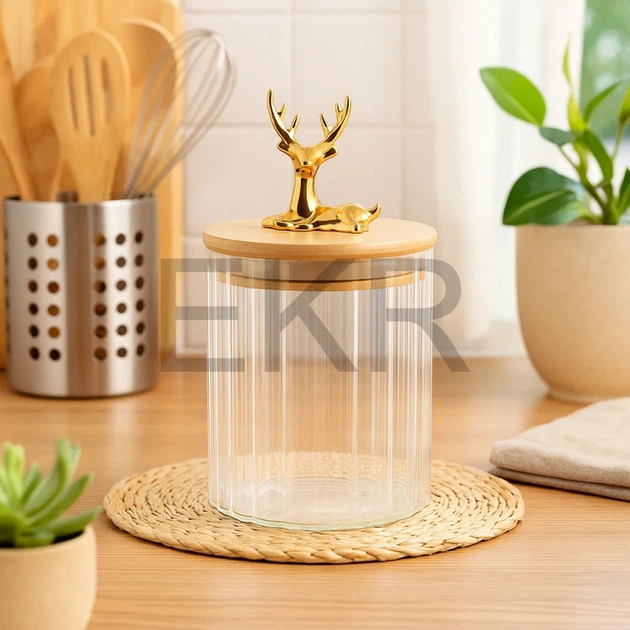 Банку для зберігання 550 мл із бамбуковою кришкою та золотим оленем | Ємність для сипучих, кухонная банка декоративна (992-2