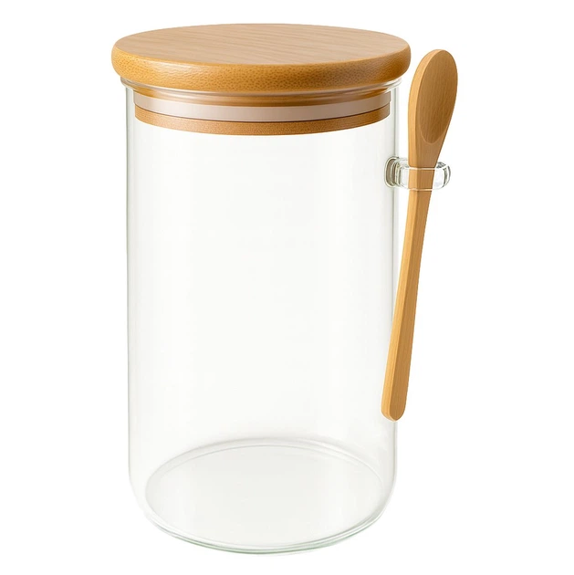 Скляна банка з бамбуковою кришкою та ложкою, 750мл