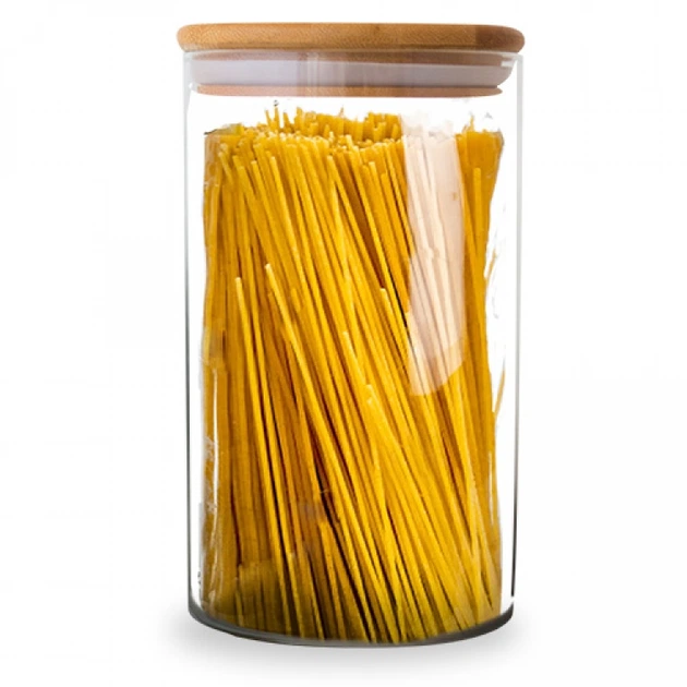 Банка скляна з дерев'яною кришкою для зберігання сипких круп та макаронів 950мл