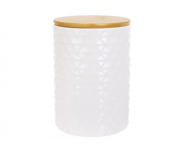 Банка керамічна з рельєфом 700мл з бамбуковою кришкою, колір-глянсовий білий