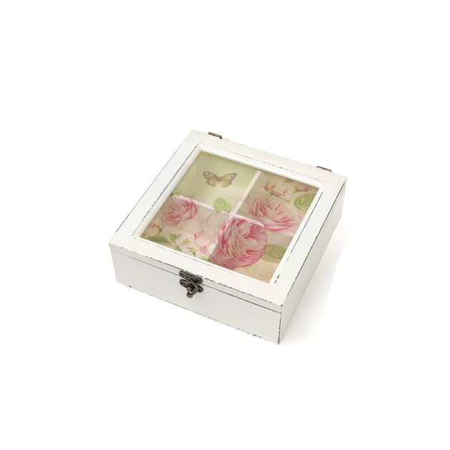 Коробка для чаю BonaDi Квіти 487-310 дерев'яна з скляною кришкою