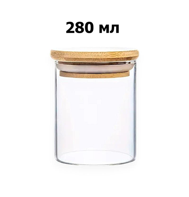 Банка для зберігання Avtoaks із боросилікатного скла з бамбуковою кришкою циліндрична 280 мл