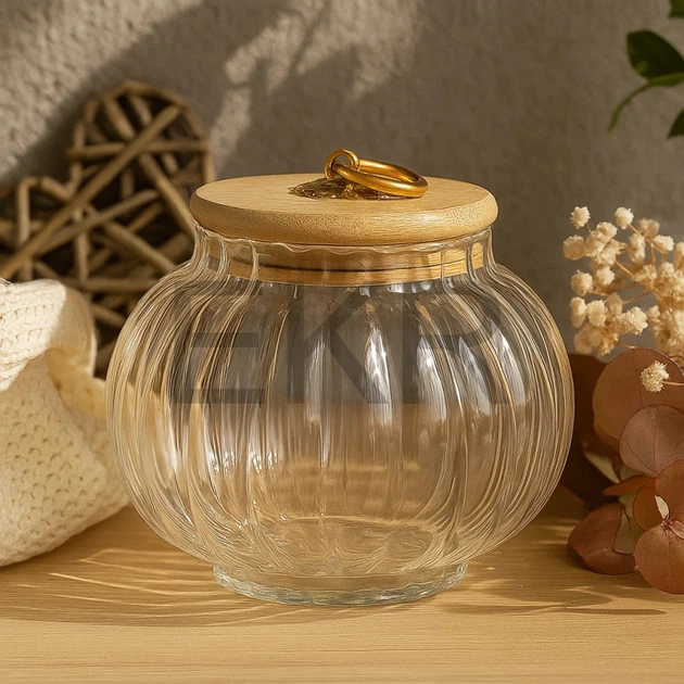 Скляна банка для зберігання продуктів з бамбуковою кришкою, 750 мл (992-290)