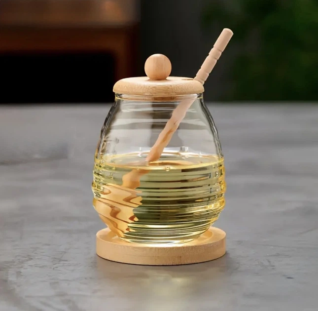 Скляна банка для меду з ложкою 300мл (M-9642)