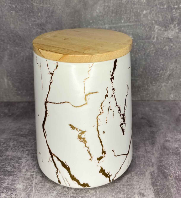 Банку порцелянова Клітка для сипучих продуктів 900мл з деревяною кришкою білий з мятним