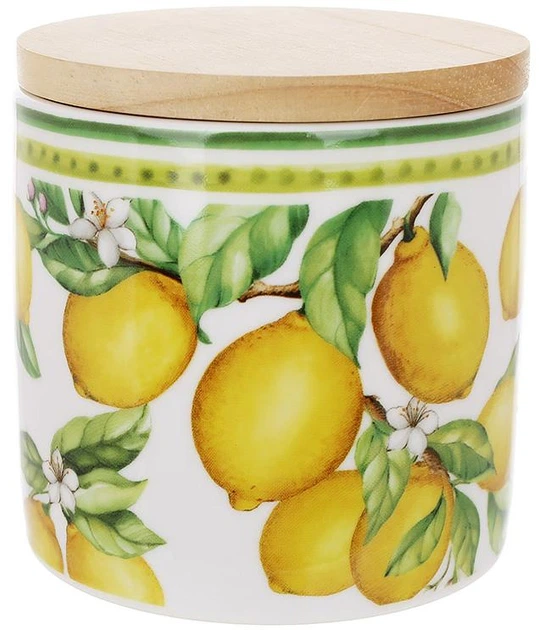 Банка порцелянова Сицилійський Лимон 460мл для сипучих продуктів, з дерев'яною кришкою (BD-K114)