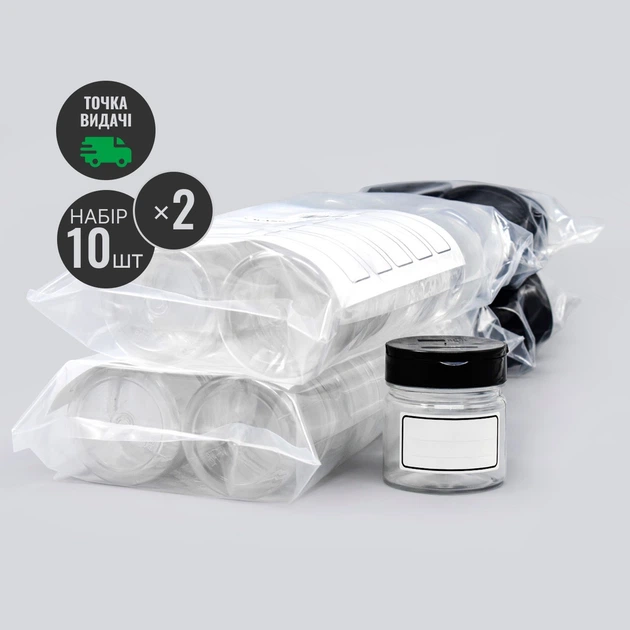 Баночка для спецій 10шт. Klebrig 150мл з кришкою ПЕТ комплект 2 упаковки ПЕТ-К-015.СПЦ-10х2