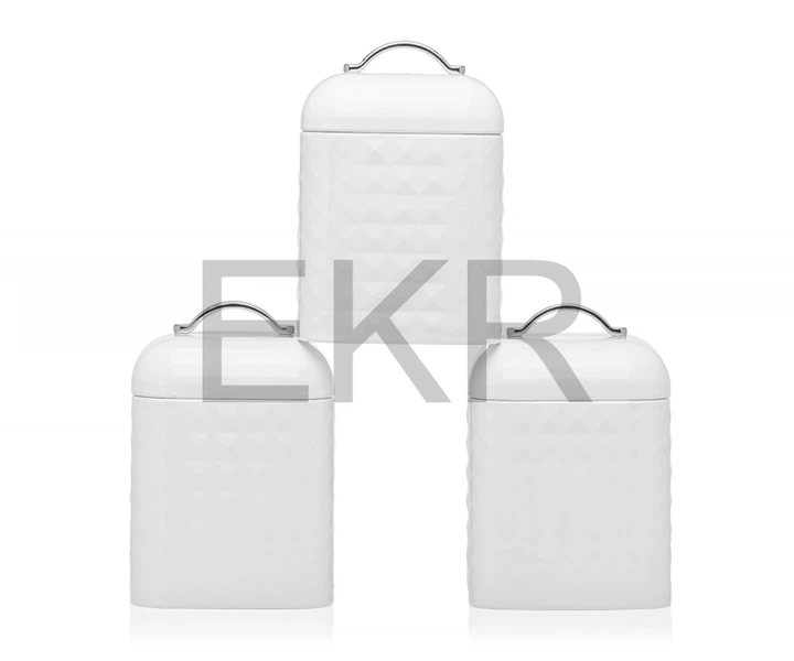Набір Ємностей для Зберігання: Кава, Чай, Сахар - Трійка Стильних Баночок для Кухні (MR-1676-3S-WHITE)