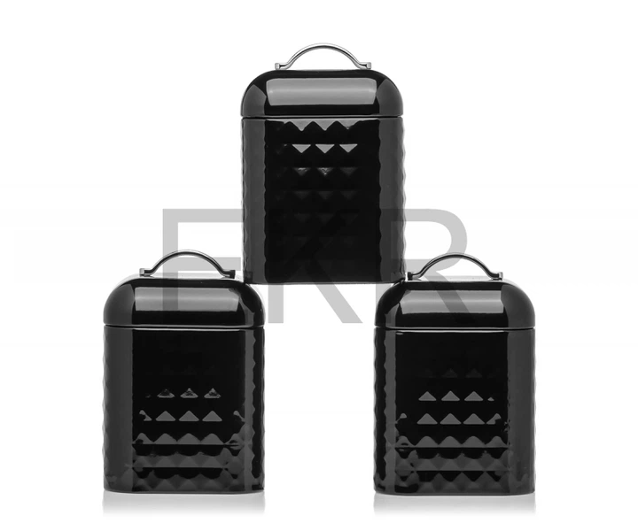 Набір Ємностей для Зберігання: Кава, Чай, Сахар - Трійка Стильних Баночок для Кухні (MR-1676-3S-BLACK)