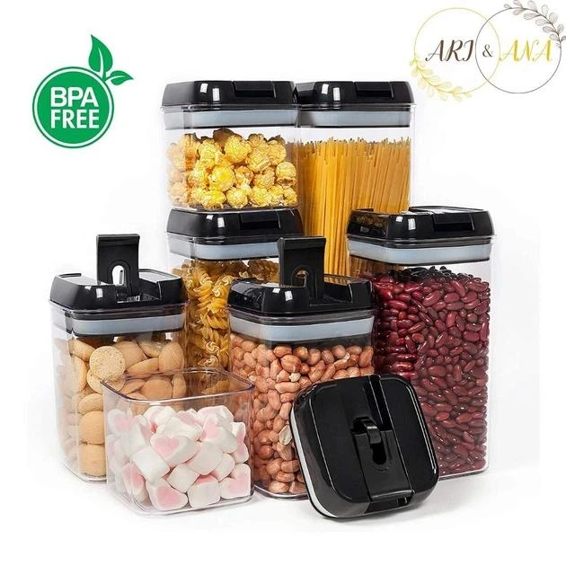 Набір контейнерів на 7шт для зберігання продуктів харчування, сипучих та рідин з герметичною чорною кришкою