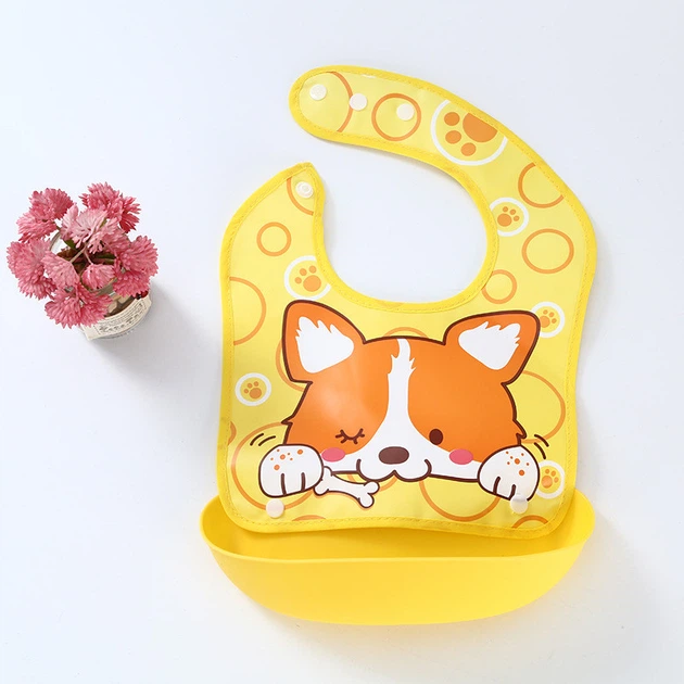 Слюнявчик ПВХ з кишенею, що відстібається 2Life Собачка 34х23 см Жовтий (vol-9857)