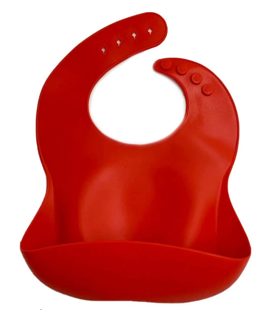 Дитячий слиньчик силіконовий 30-23 см з чотирма застібками і кишенею Червоний (vol-9692)