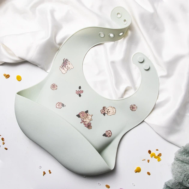 Слинявчик силіконовий з кишенею Ведмежата Світло-зелений SBM03