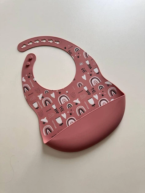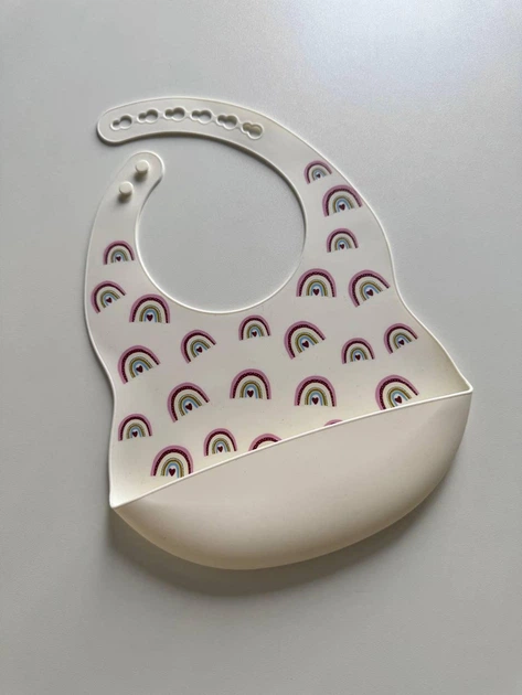 Силіконовий слюнявчик з принтом, дитячий силіконовий нагрудник Веселка 2 Румянець