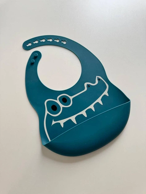 Силіконовий слюнявчик з принтом, дитячий силіконовий нагрудник Мордочки Крокодил