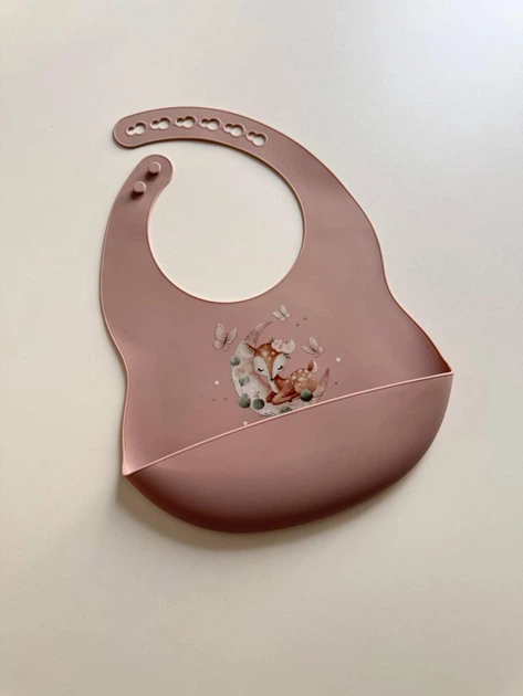 Силіконовий слюнявчик з принтом, дитячий силіконовий нагрудник Оленятко Пудра