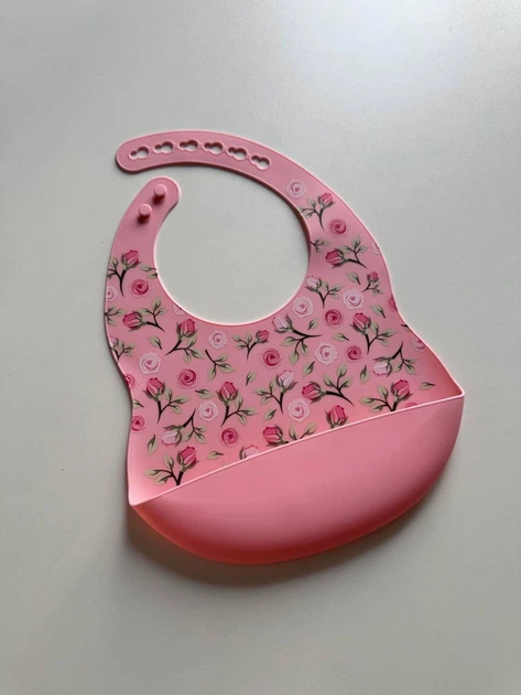 Силіконовий слюнявчик з принтом, дитячий силіконовий нагрудник Троянди Рожеві