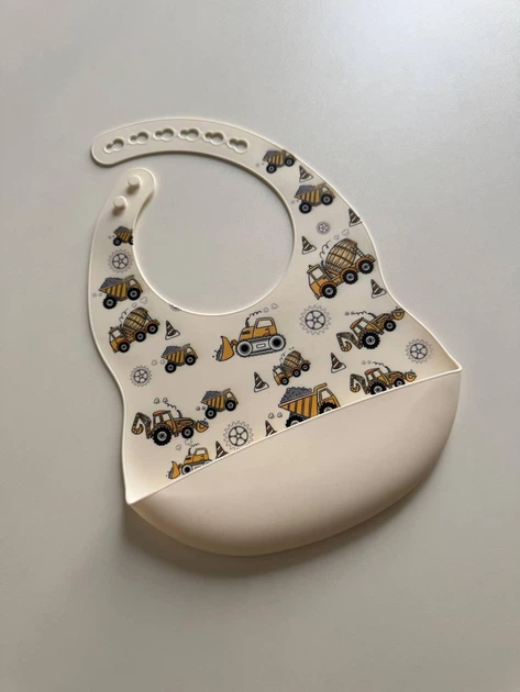 Силіконовий слюнявчик з принтом, дитячий силіконовий нагрудник Машинки Білий