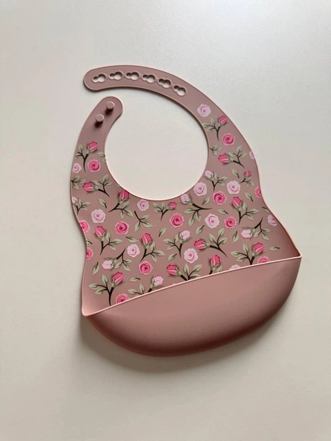 Силіконовий слюнявчик з принтом, дитячий силіконовий нагрудник Троянди Пудра