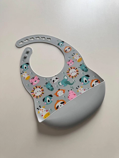 Силіконовий слюнявчик з принтом, дитячий силіконовий нагрудник Звірята Гірчиця