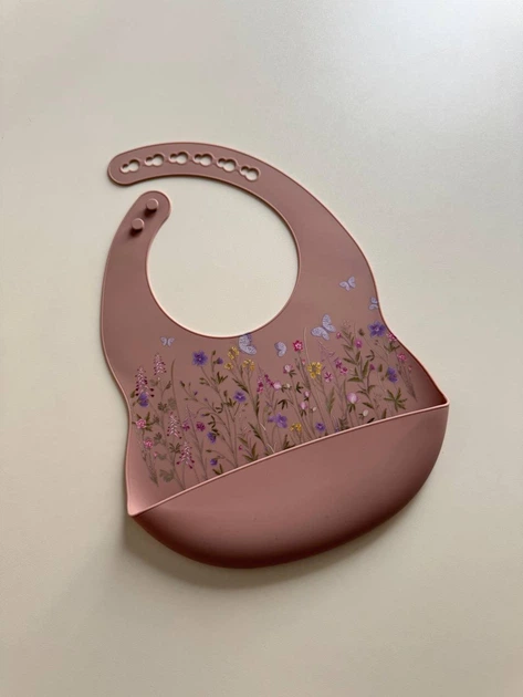 Силіконовий слюнявчик з принтом, дитячий силіконовий нагрудник Квіти польові Пудра