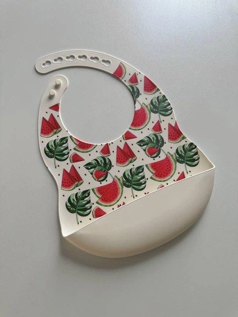 Силіконовий слюнявчик з принтом, дитячий силіконовий нагрудник Кавун