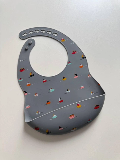 Силіконовий слюнявчик з принтом, дитячий силіконовий нагрудник Кораблі