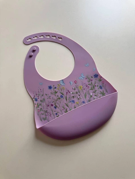 Силіконовий слюнявчик з принтом, дитячий силіконовий нагрудник Квіти польові Фіолетовий