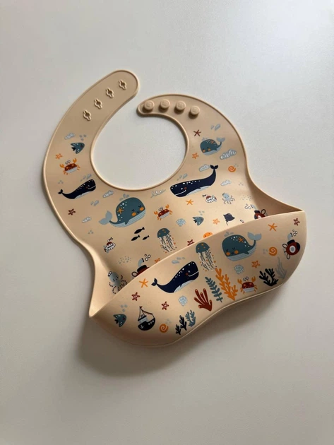 Силіконовий слюнявчик з принтом, дитячий силіконовий нагрудник Океан Капучино