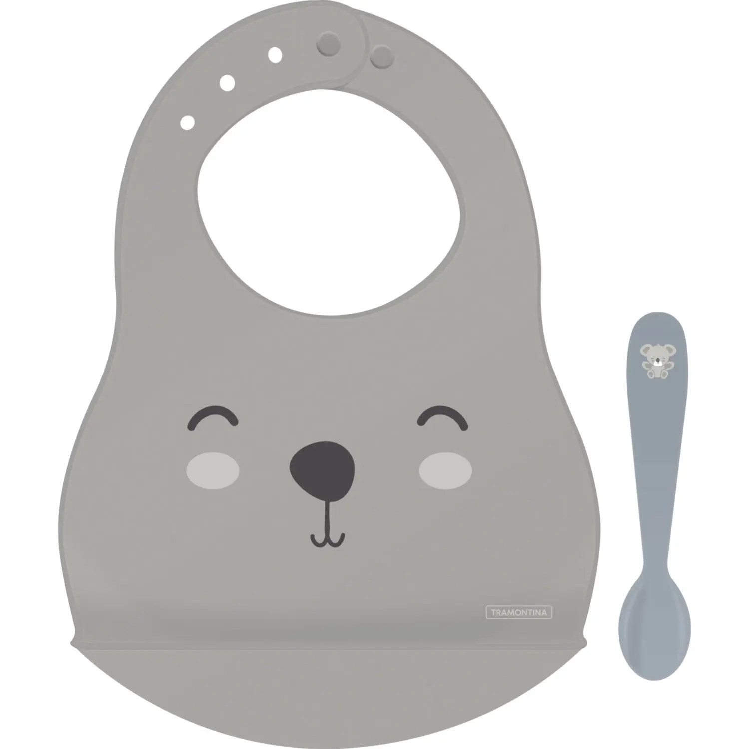 Набір дитячого посуду TramontinaBaby Le Petit слюнявчик та ложка сірі (23797/604)