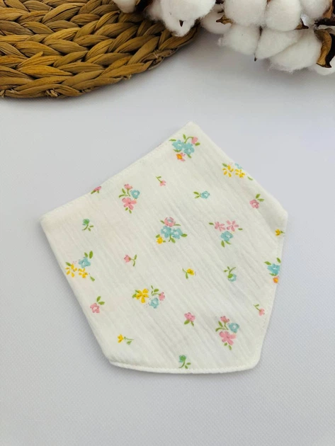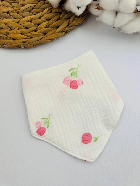 Непромокальний двосторонній нагрудники-слинявчик на кнопках з мусліну білий з малюнком тюльпан 40х25х25 см