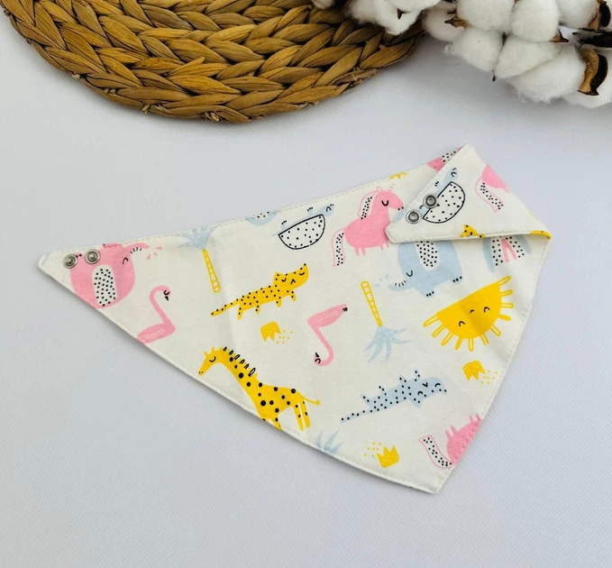 Непромокальний двосторонній нагрудники-слинявчик на кнопках з мусліну білий з малюнком 40х25х25 см