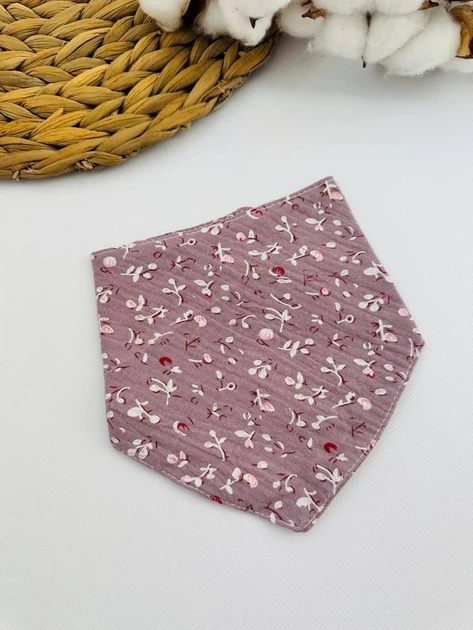 Непромокальний двосторонній нагрудники-слинявчик на кнопках з мусліну Сливовий з малюнком 40х25х25 см