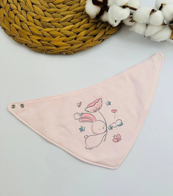 Непромокальний двосторонній нагрудники-слинявчик на кнопках з бавовни рожевий з малюнком Зайчик 40х25х25 см