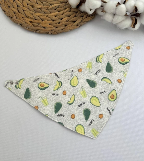 Непромокальний двосторонній нагрудники-слинявчик на кнопках з бавовни Сірий з малюнком Авокадо 40х25х25 см