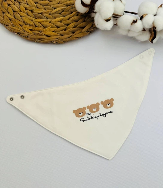 Непромокальний двосторонній нагрудники-слинявчик на кнопках з бавовни молочний з малюнком Ведмедики 40х25х25 см