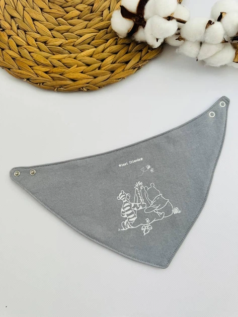 Непромокальний двосторонній нагрудники-слинявчик на кнопках з бавовни сірий Дісней 40х25х25 см