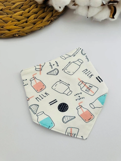 Непромокальний двосторонній нагрудники-слинявчик на кнопках з бавовни молочний з малюнком Мілк 40х25х25 см