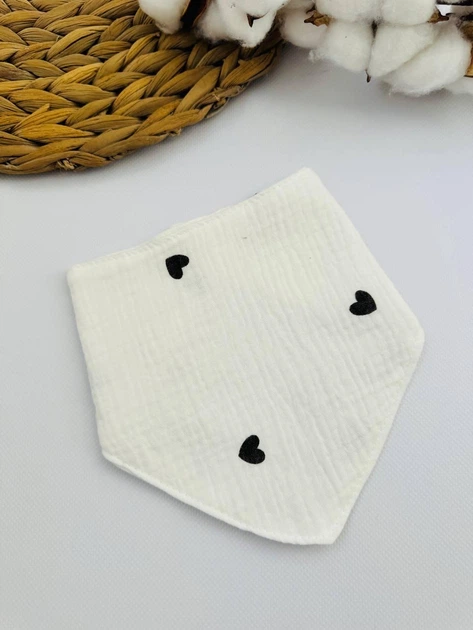 Непромокальний двосторонній нагрудники-слинявчик на кнопках з мусліну білий з малюнком Серденька 40х25х25 см