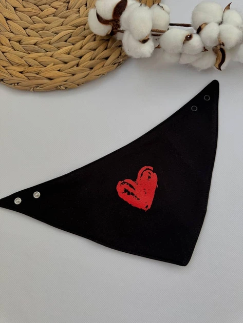 Непромокальний двосторонній нагрудники-слинявчик на кнопках з бавовни чорний з малюнком Сердечко 40х25х25 см