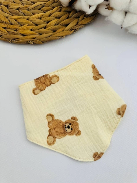 Непромокальний двосторонній нагрудники-слинявчик на кнопках з мусліну бежевий Ведмежа 40х25х25 см