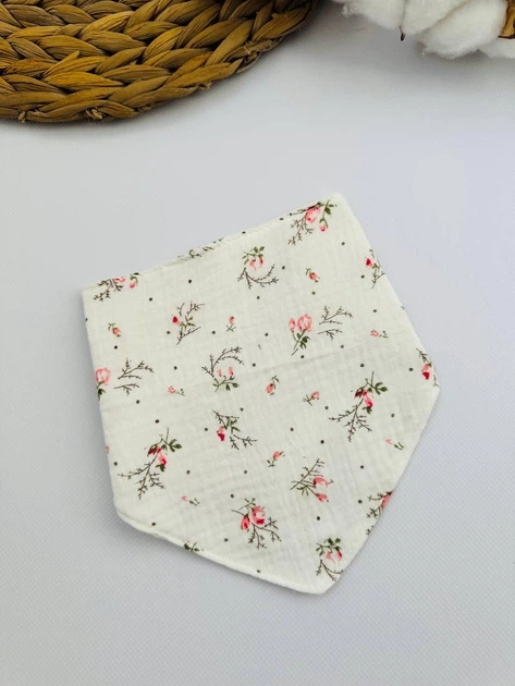Непромокальний двосторонній нагрудники-слинявчик на кнопках з мусліну білий з малюнком гілочки 40х25х25 см